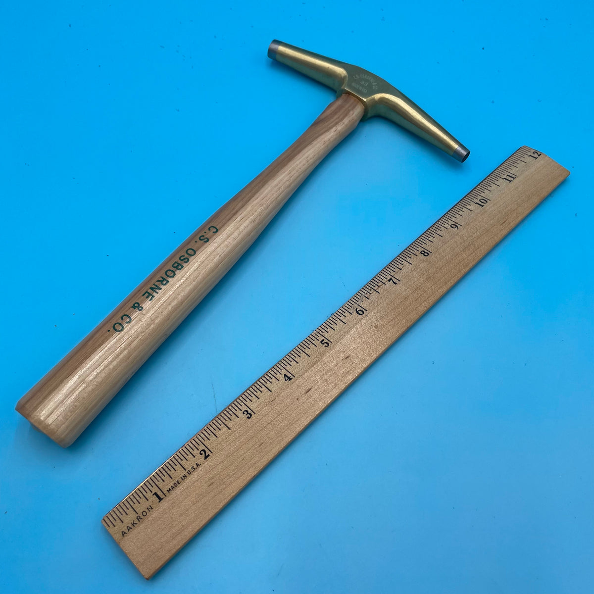 C.S. Osborne 7 Ounce Head Bronze Magnetic Hammer. Solid head of bright bronze. Steel tipped at one end for permanent magnet and at the other end for hammering. Balanced design, & lacquered hickory handle.